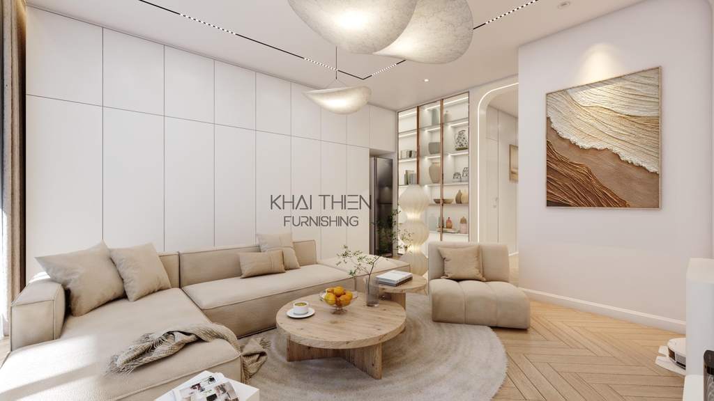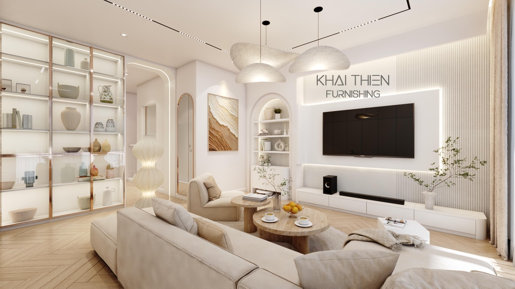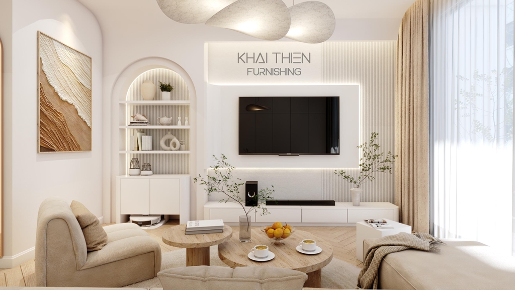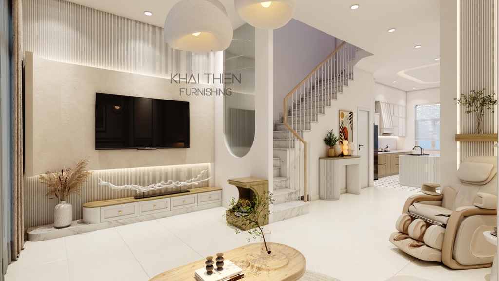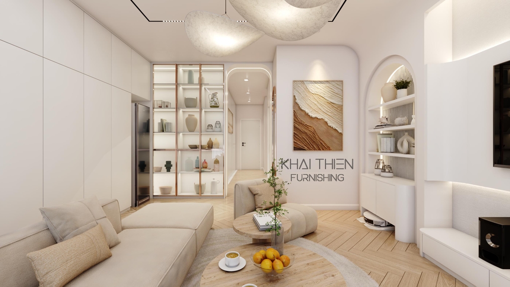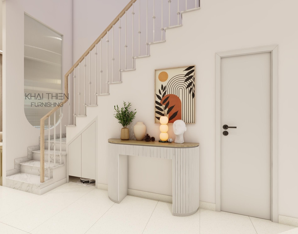 Vừa bước vào căn nhà, bạn sẽ bị thu hút bởi bầu không khí chữa lành trong nhà. Màu trắng pha một xíu sắc màu kem bao phủ toàn bộ ngôi nhà, bầu không khí ấm áp hiện hữu khắp nơi