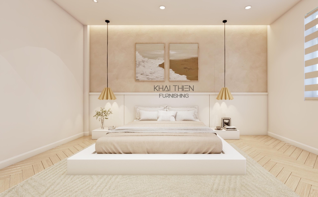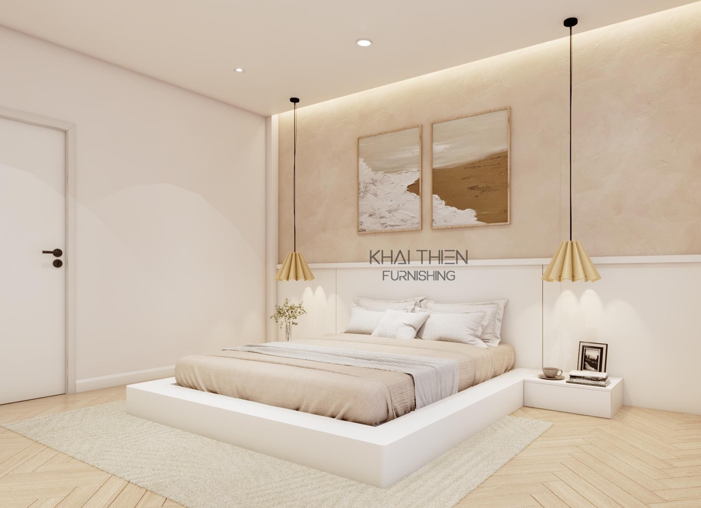 - Ánh sáng: Sử dụng ánh sáng vàng trắng dịu nhẹ, tránh ánh sáng quá gắt hoặc đèn treo thấp để tạo giấc ngủ ngon và không gian thư giãn. Màu sắc: Ưu tiên các tông màu trung tính, nhã nhặn như trắng, be, xám, xanh nhạt để tạo cảm giác bình yên, rộng rãi. Tránh màu quá tối hoặc quá sặc sỡ
