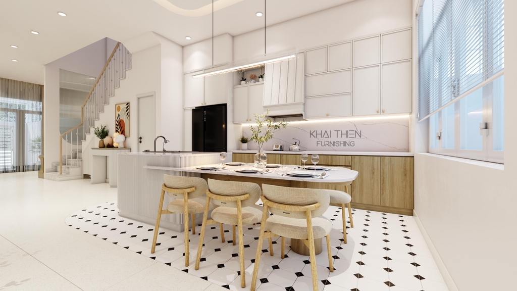Gia chủ có thể thiết kế không gian mở, kết nối khu vực phòng khách và phòng ăn để tạo nên không gian sinh hoạt thông thoáng, thuận tiện.
