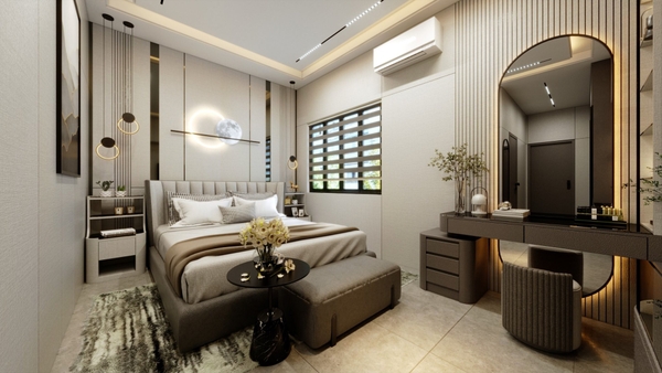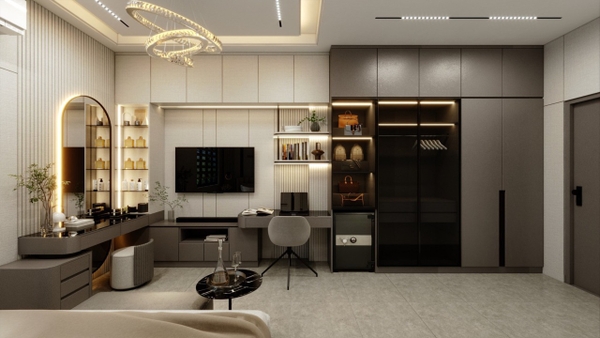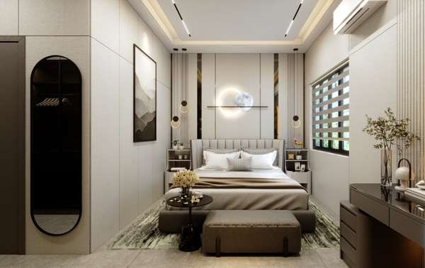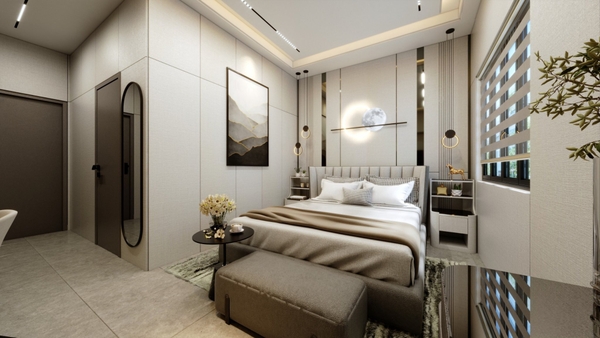 - Phòng ngủ Master được thiết kế theo phong cách hiện đại sang trọng, Phòng ngủ Master theo phong cách hiện đại sang trọng thường sử dụng các đường nét thiết kế đơn giản, gọn gàng, phối màu trung tính (trắng, xám, nâu, be) để tạo không gian rộng rãi, thoáng mát.