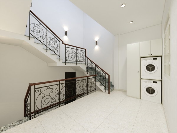 Hình ảnh phối cảnh 3D cầu thang, lối lên 2 phòng bé