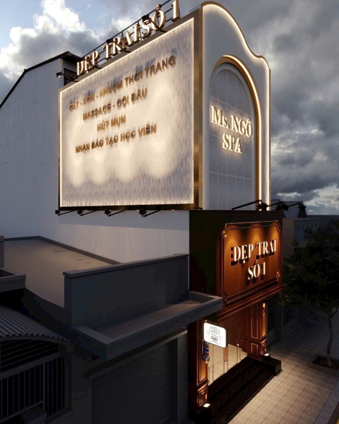 - Hình ảnh phối cảnh 3D mặt tiền trời sáng và trời tối, để gia chủ có cái nhìn trực quan nhất về hệ thống đèn chiếu, đảm bảo đủ độ sáng đèn khi người qua đường chạy xe từ xa có thể nhìn rõ ràng nhất về tên thương hiệu.