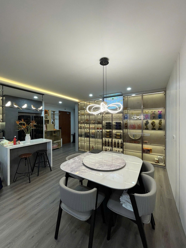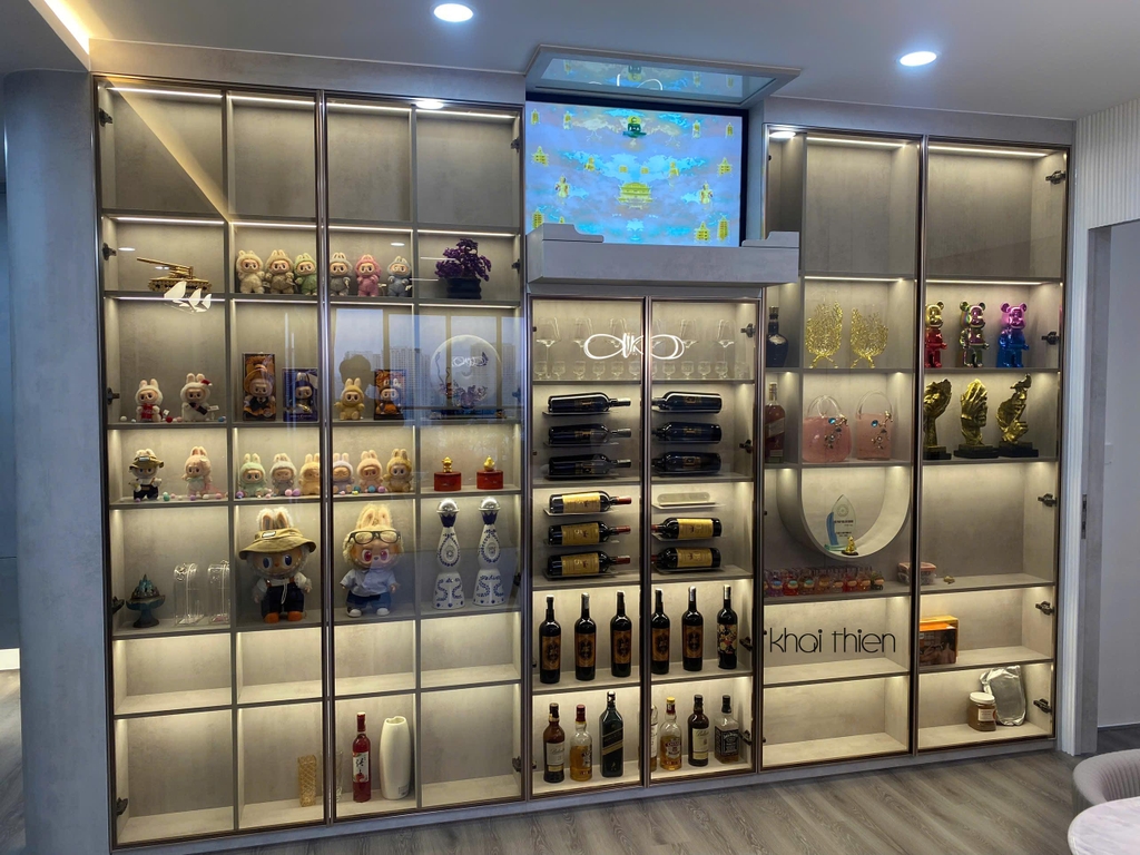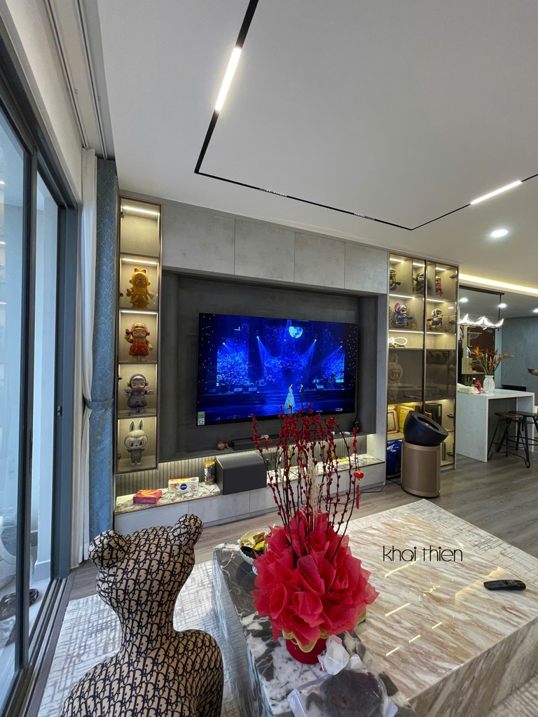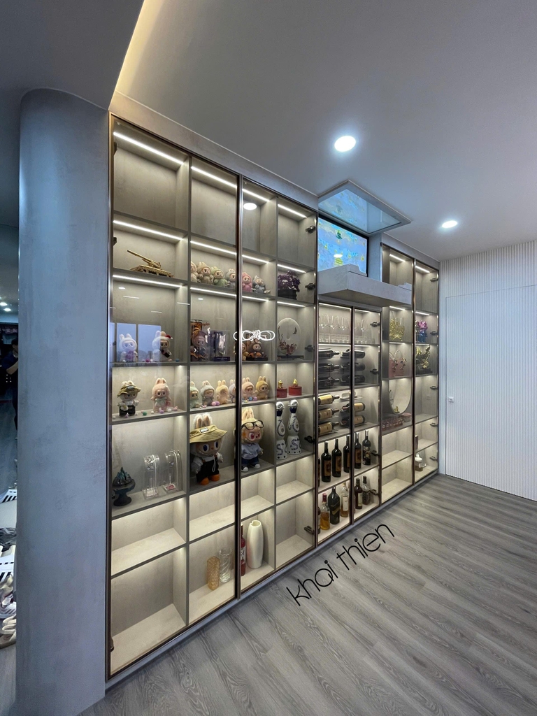 - Đa phần nội thất tại căn hộ này đều được gia chủ ưng ý nhất là các hệ tủ cánh kính sang trọng. Các chi tiết nội thất decor trong tủ cánh kính làm nịnh mắt nhìn nhất là bộ sưu tập "labubu" xịn xò và những món trang trí đắt tiền mà gia chủ dày công tỉ mỉ sắp xếp và trang trí