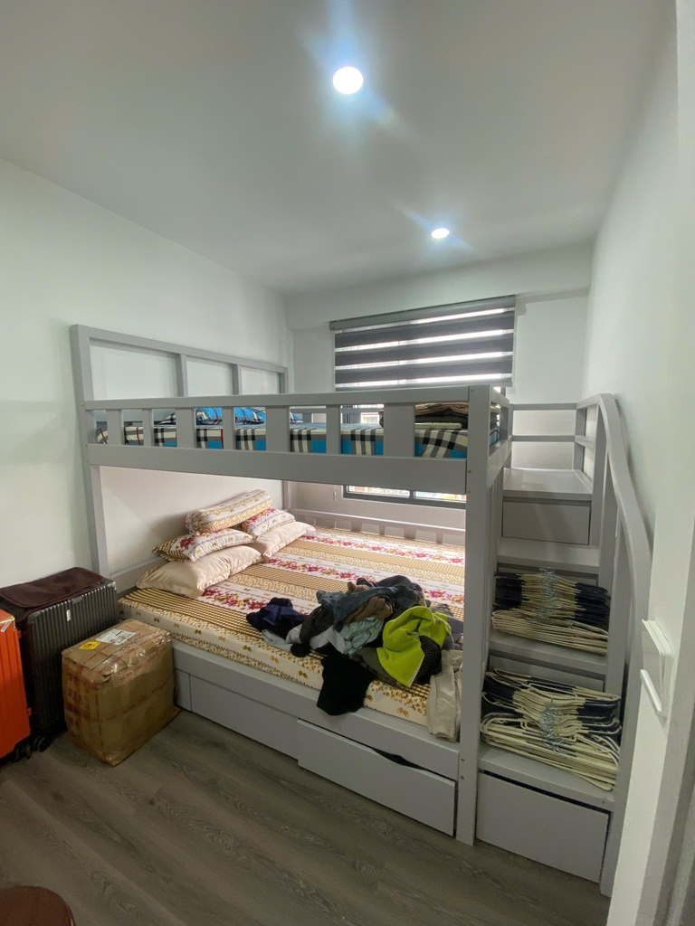 - Hình ảnh giường tầng tích hợp các hộc chứa đồ, Với xu hướng tiện dụng, đa năng của các sản phẩm nội thất hiện nay. Chiếc giường tầng có hộc kéo này chắc chắn sẽ chinh phục được nhiều khách hành khó tính với thiết kế các hộc kéo bên dưới thuận tiện cho việc cất giữ quần áo, chăn gối, vật dụng khác… sẽ giúp căn phòng ngủ của bạn trở nên gọn gàng, tinh tế hơn.