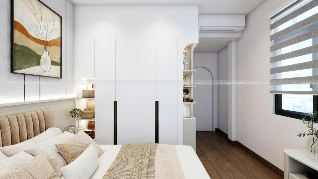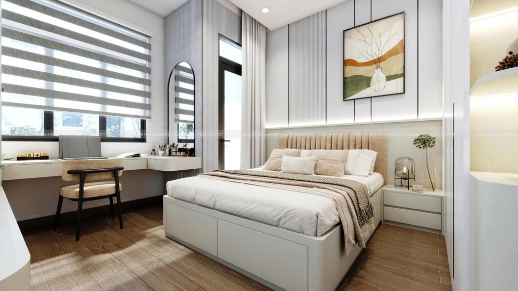 - Để trang trí nội thất phòng ngủ hiện đại tối giản, hãy tập trung vào gam màu trung tính (trắng, xám, be) để tạo cảm giác rộng rãi, thanh thoát và sử dụng đồ nội thất đơn giản, gọn gàng với công năng thông minh